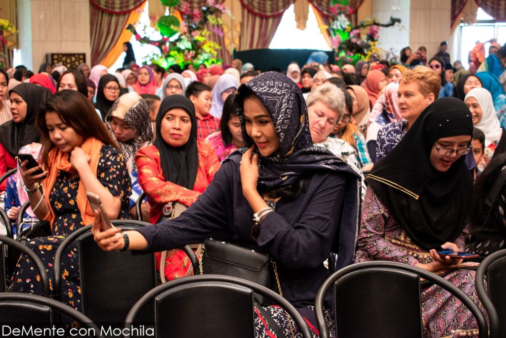 Ya demoré demasiado la fila y desde seguridad me piden que avance. Tengo que saludar a la princesa y otras tres veteranas que son parte de la corte. Gracias a mi breve conversación con la Reina, las señoras olvidaron los protocolos y están de charla como si fuera la plaza de barrio. Me da un poco de vergüenza interrumpirlas, aunque peor sería seguir de largo y no saludarlas. Su reacción es aún más exagerada que la de la Reina: ¿Qué haces acá? ¿Viajas sola? ¿Por qué viniste a Brunéi? ¿Qué has visitado? ¿Te gusta Brunéi? ¡Tenés que volver el año que viene!