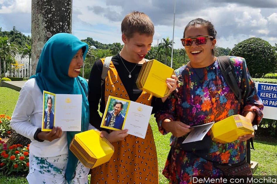 Esta mezcla de curiosidad, sorpresa e incredulidad me da mucha ternura. Salgo del salón y, mientras me entregan el regalo de rigor y una tarjeta con la foto del Sultán, las preguntas de las veteranas rebotan como flubber en mi cabeza. ¿Qué hago acá? ¿Cómo terminé visitando el Palacio del Sultán de Brunei, metida en un traje tradicional con flores de colores y hablando con la Reina como si fuera una tía lejana? No tengo idea, pero supongo que este desparpajo es lo que me lleva a vivir situaciones tan incoherentes: estar en el lugar y momento correcto, ver la oportunidad y perseguirla incansablemente. Al final, viajar se trata de eso… ¿no?