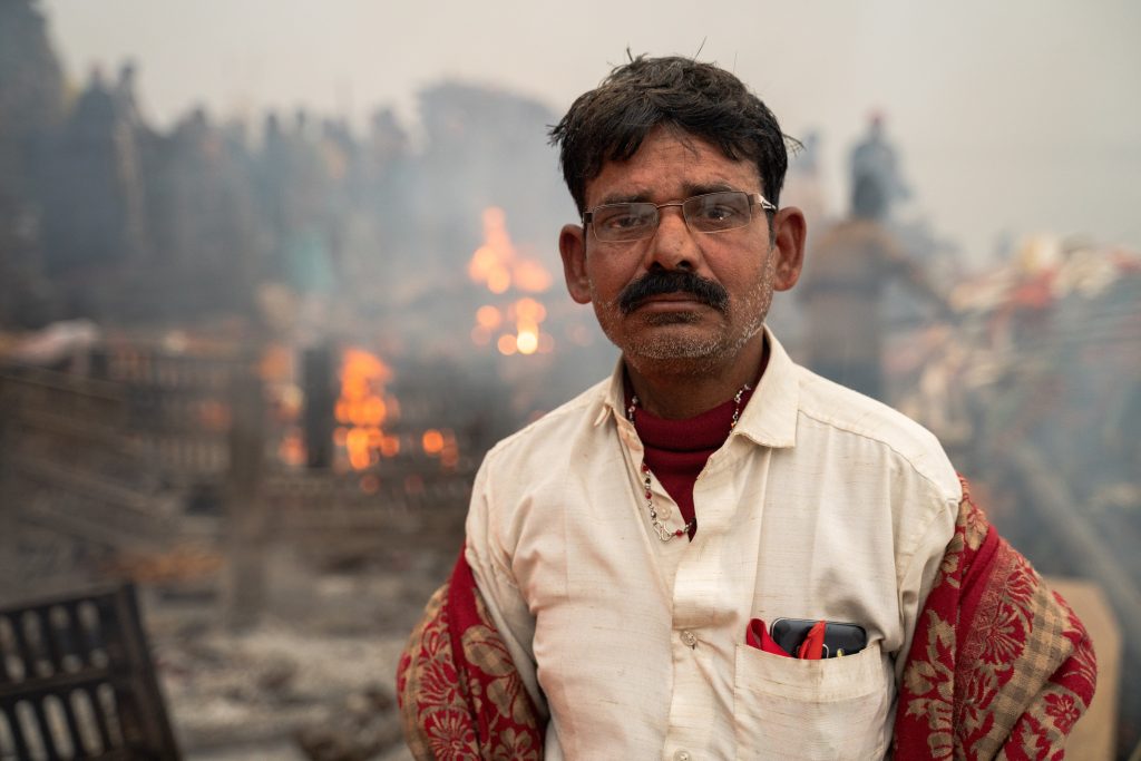 A metros de las cremaciones hay un veterano vendiendo chai masala, algunos muchachos ríen resguardados de la lluvia y en una olla se bañan en aceite unas bolas de papa. Un grupo de hombres casi desnudos revuelven el fondo del río con unos latones en busca de joyas. Es que allí se tiran las cenizas de los muertos y cada tanto viajan camufladas las alhajas que sobrevivieron la cremación. Estas son entregadas al templo y se usan para pagar la leña de las familias que no pueden acceder al costo.