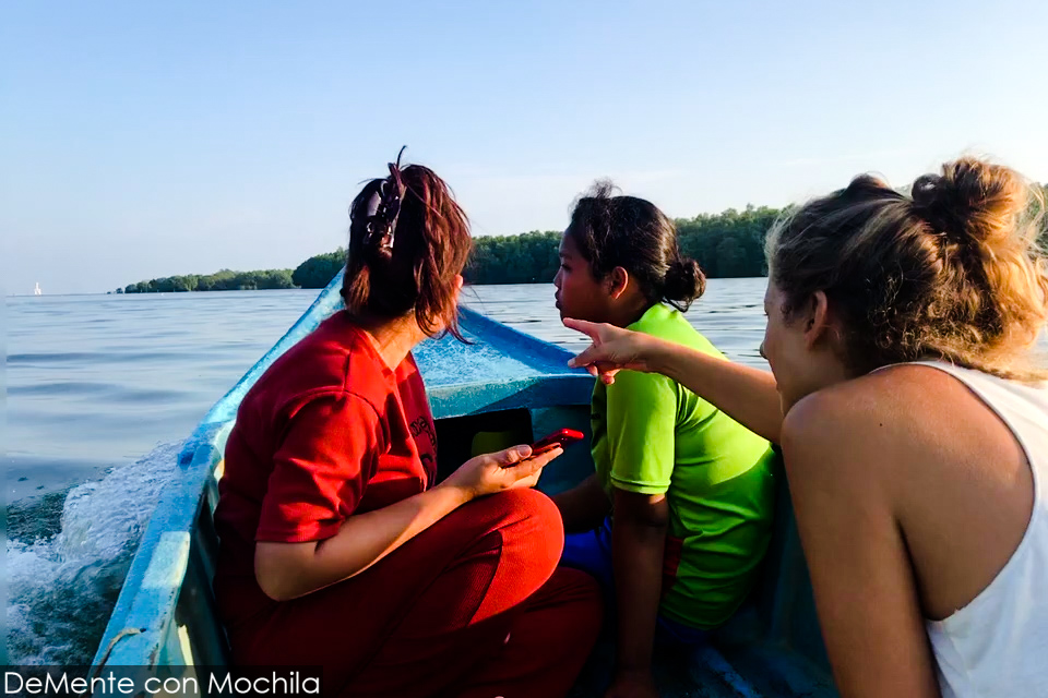 El bote está amarrado en un almacén que parece el punto de encuentro de la comunidad local, así que la presentación en sociedad no se hace esperar. Varias risas se escuchan de fondo cuando hago malabares para no caerme con mi mochila de 50 litros en la espalda. Imagino que esperaban el glorioso blooper de precipitarme al agua en el primer balanceo, pero no les doy el gusto.